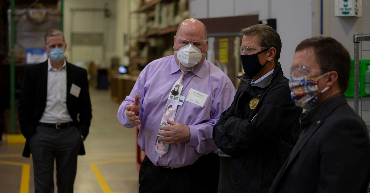 The visit to CAIRE was part of a tour of select manufacturers and businesses in north Georgia by Kemp and his team, but it was particularly relevant given the company’s ongoing response in providing critically-needed oxygen equipment during the novel coronavirus, COVID-19, pandemic here in Georgia and throughout the world.